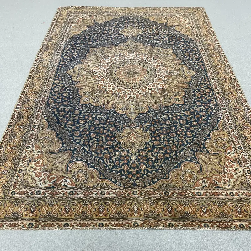Canlı Fas Halısı, 6x9 ft Turuncu ve Mavi