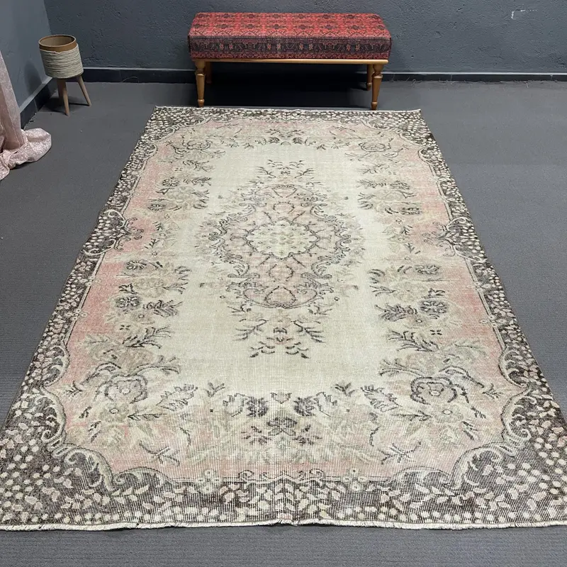 Turuncu ve Bej Halı, 5,7x9,2 ft Bitki ve Ağaç Desenli