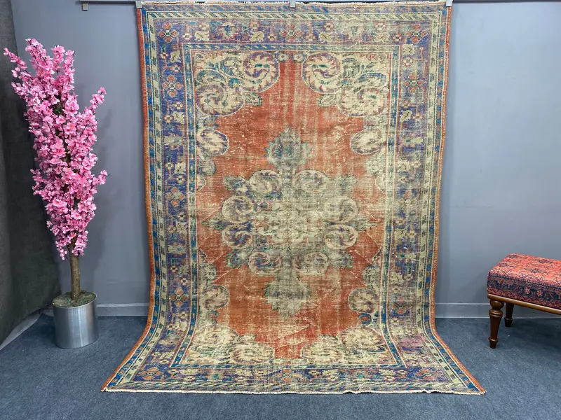 Kırmızı & Mavi Soyut Halı, 180x240 cm Zarif Dekor