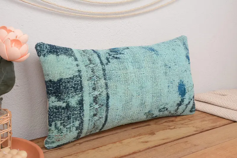 El Yapımı Yeşil & Mor Çiçek Kırlent, 12x24 Vintage Dikdörtgen Yastık