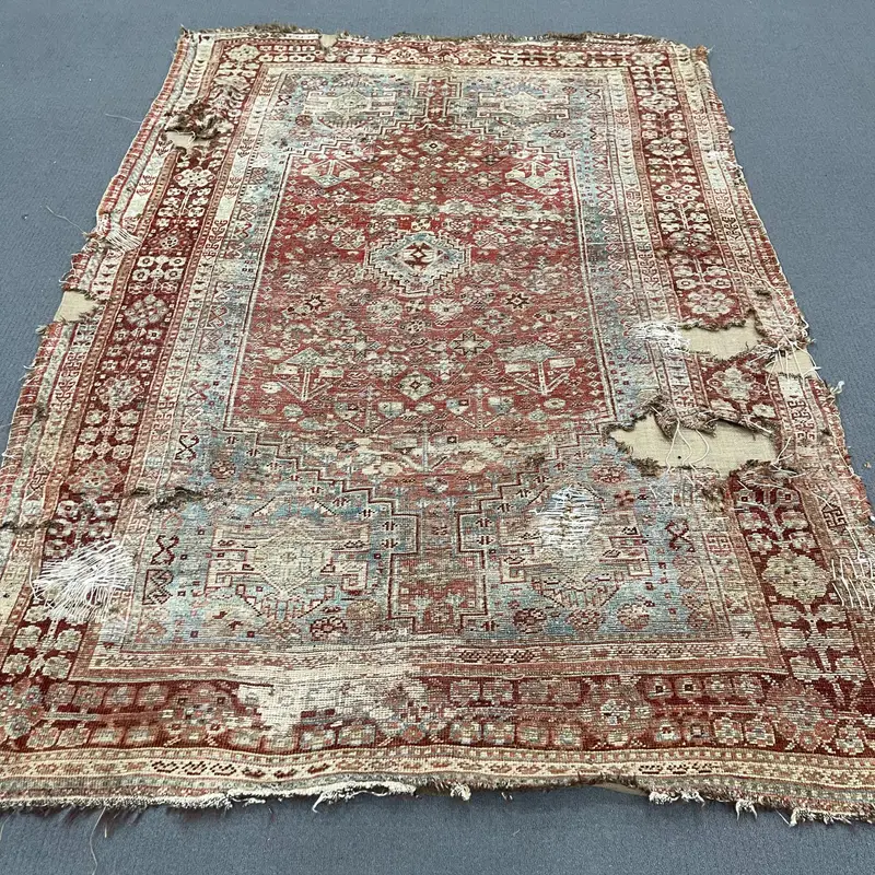 Kırmızı & Mavi Halı, 5,6x8,2 ft Zarif Bordürlü Tasarım