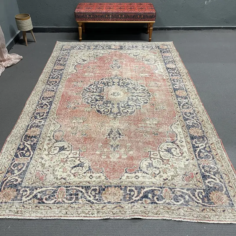 Kırmızı & Mavi İkat Halı, 6,1x9,6 ft Zarif Yaşam Alanı