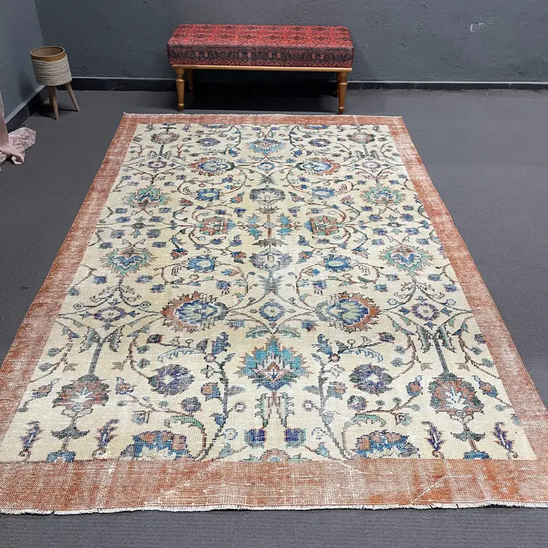 Bej ve Mavi Ombré Halı, 6,3x9,5 ft Şık Dekor