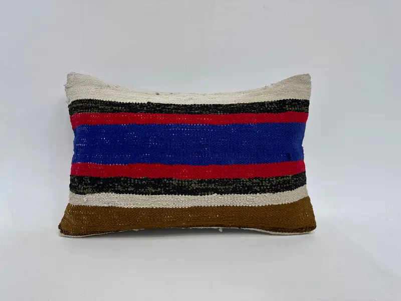 Kırmızı Çizgili Kırlent, 16x24 Nakışlı Vintage Yastık