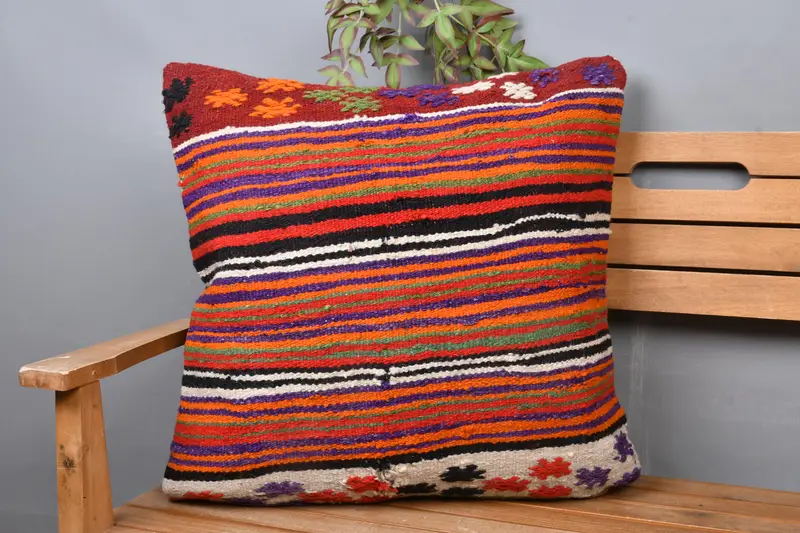Vintage Cazibeli Kırmızı, Kahverengi Çizgili Yastık, Kırlent