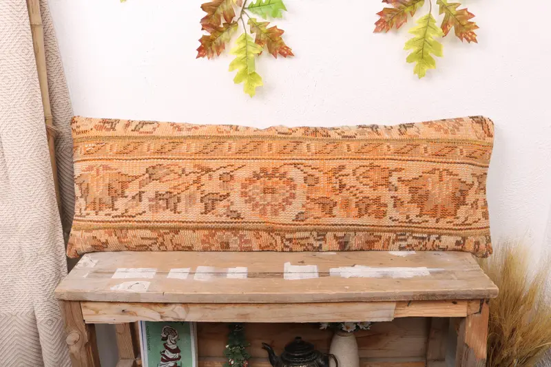 Turuncu & Kahverengi Patchwork Kırlent, 12x36 El Yapımı Kırlent