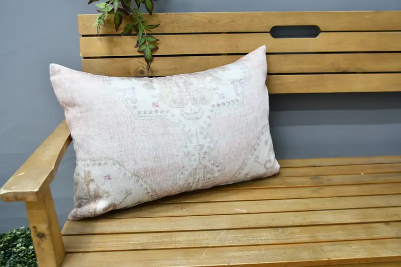 El Yapımı Güneybatı Kırlent, Bej ve Kahverengi Vintage Keten Yastık