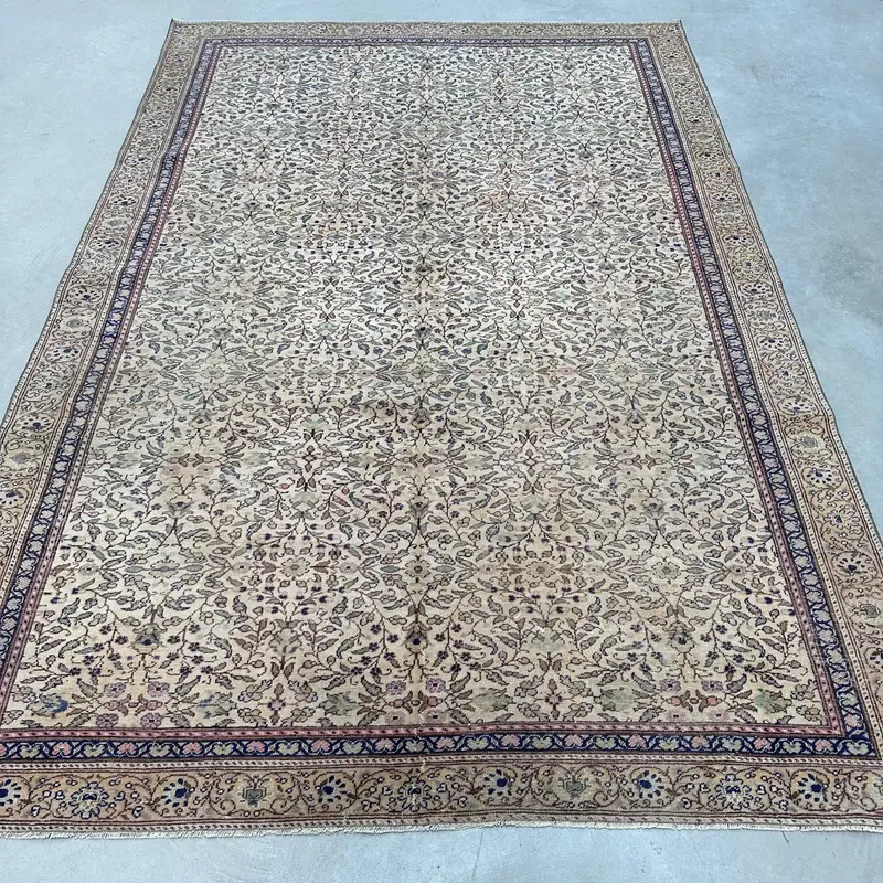 Zarif Bej Ombré Halı, Yeşil Desenli 6,2x9,2 ft