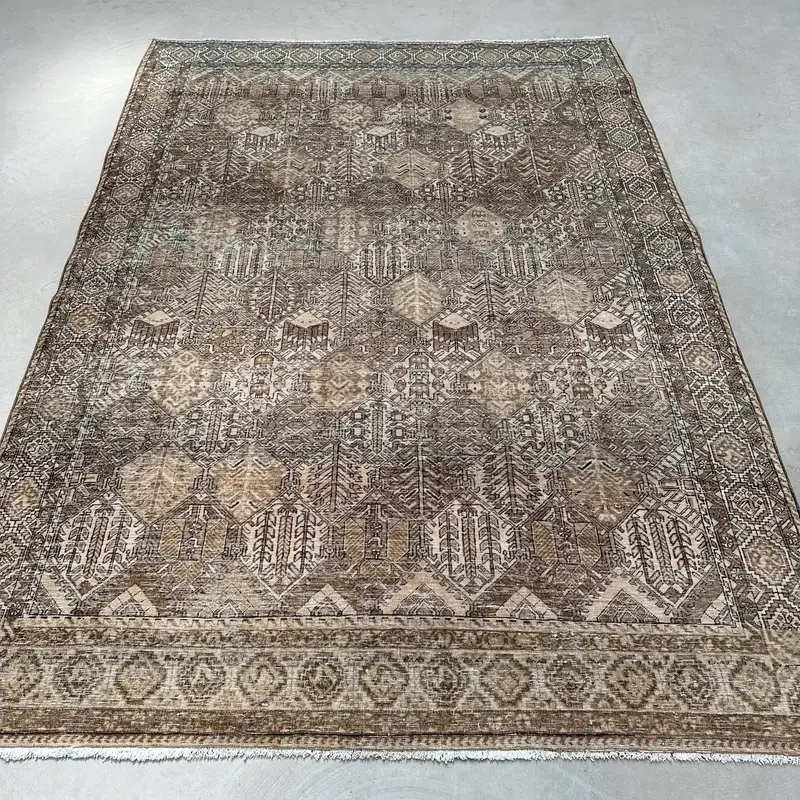 Kahverengi, Bej Patchwork Halı, 6,9x9,8 ft