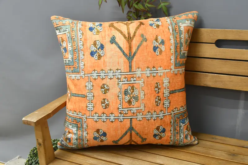 Turuncu Güneybatı İşlemeli Yastık Kılıfı, Dikdörtgen Kırlent