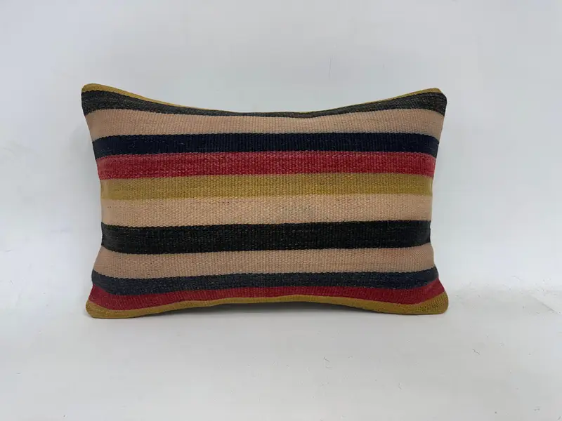 Nakışlı Bej & Kahverengi Çizgili Yastık, Çok Yönlü 16x24 Kırlent