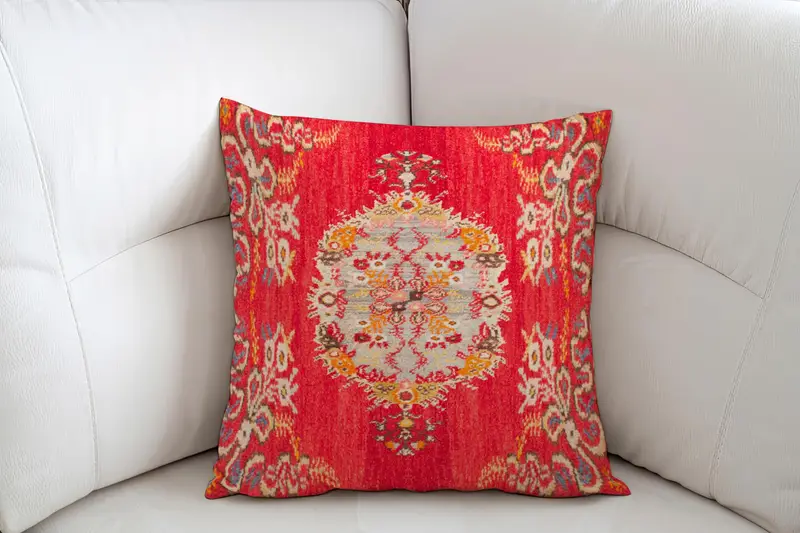 El Yapımı İşlemeli Güneybatı Destek Yastığı, Vintage Kırmızı Kırlent