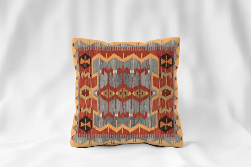Kırmızı Güneybatı İşlemeli Yastık Kılıfı, Vintage Bronz Kırlent