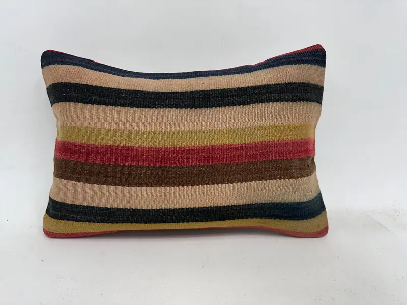 Nakışlı Bej & Kahverengi Çizgili Yastık, Çok Yönlü 16x24 Kırlent