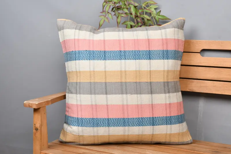 Kırmızı & Bronz Çizgili Kırlent, 24x24 Nakışlı Vintage Yastık