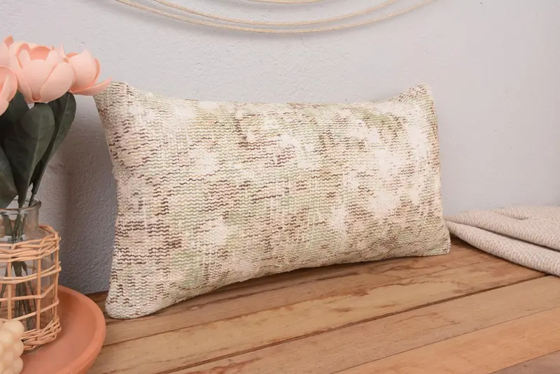Bej & Kahverengi Çizgili Kırlent, El Yapımı Nakışlı Yastık