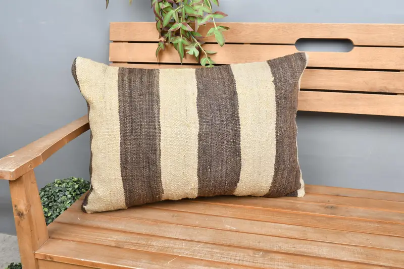 Bej&Kahverengi Çizgili Yastık, 16x24 Nakışlı Kırlent