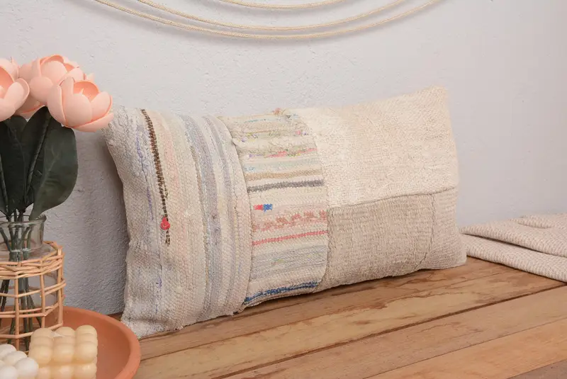El Yapımı 12x24 Nakışlı Yastık, Vintage Patchwork Kırlent