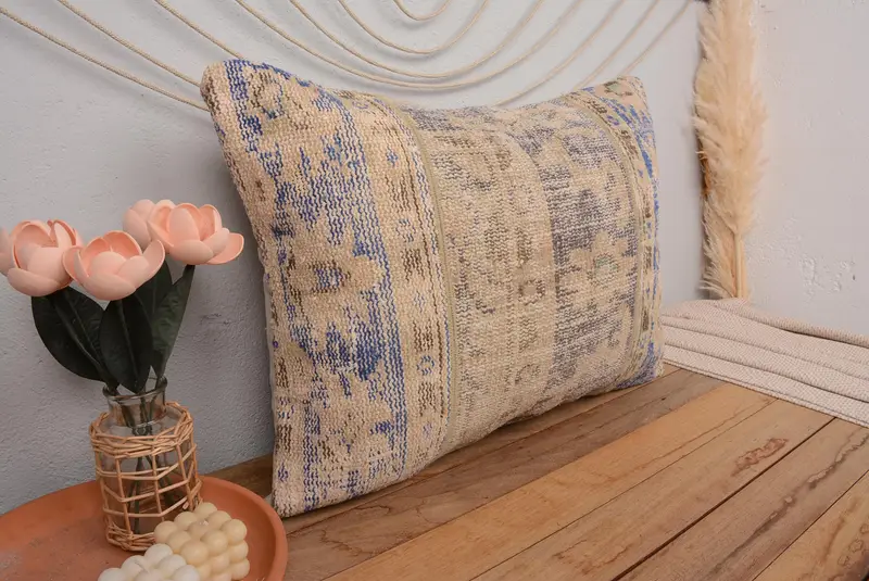 Bej & Bronz Patchwork Kırlent, 20x28 El Yapımı Kırlent