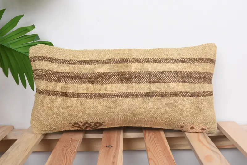 Bej & Kahverengi Çizgili Kırlent, Vintage İşlemeli Kırlent
