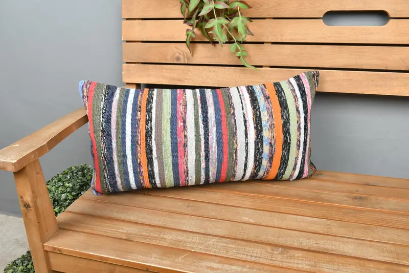 El Yapımı Yeşil & Pembe Çizgili Kırlent, 12x24 Nakışlı Kırlent