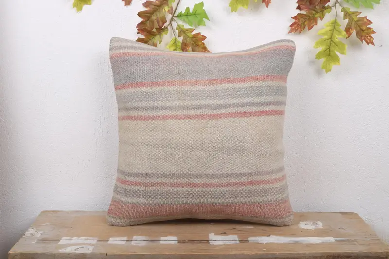 Nakışlı Bej & Gri Yastık, Çok Yönlü 18x18 Kırlent
