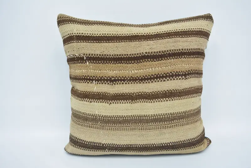 Bej & Kahverengi Çizgili Kırlent, Çok Yönlü 24x24 Dekoratif Yastık