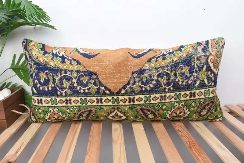 Turuncu ve Bronz Güneybatı Atma Yastığı, El Yapımı Dikdörtgen Yastık