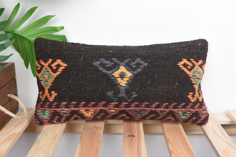 Bronz Desenli Kahverengi Güneybatı Yastık, Vintage Dikdörtgen Kırlent