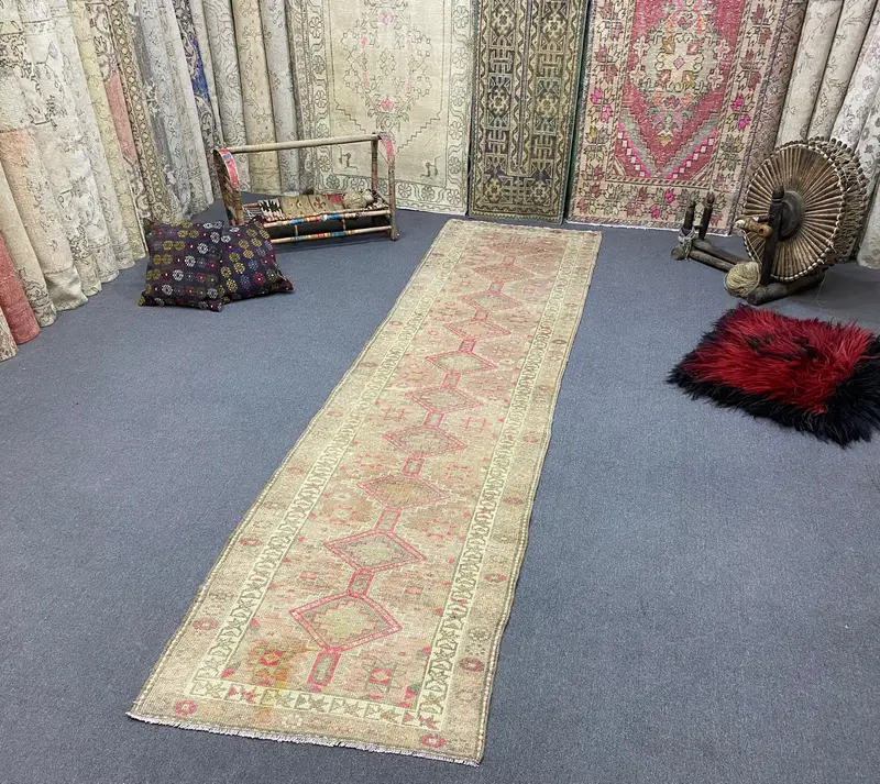 Zarif Pembe Halı, 2,8x11,7 ft Çiçek ve Geometrik Tasarım