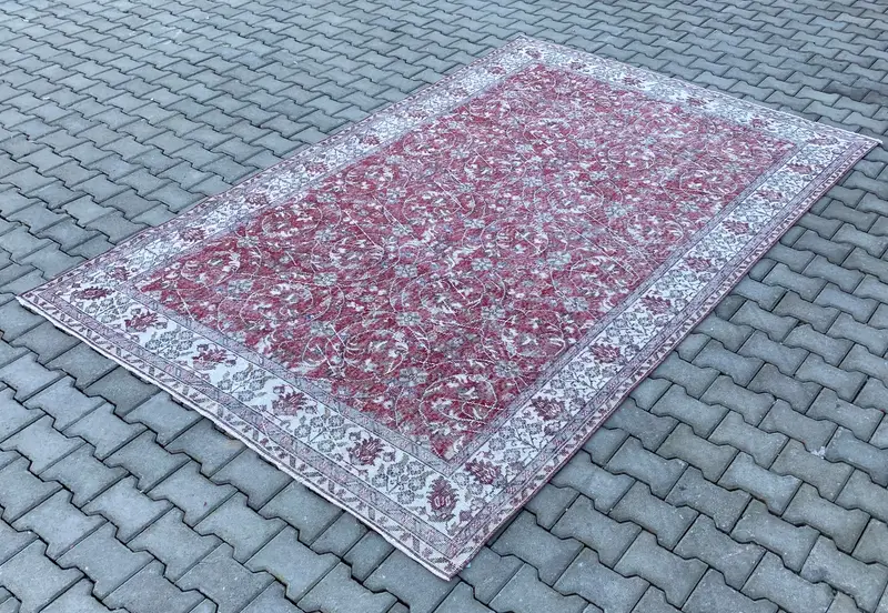 Kırmızı ve Bej Çiçekli Halı, 6,6x10,2 ft Şık Dekor