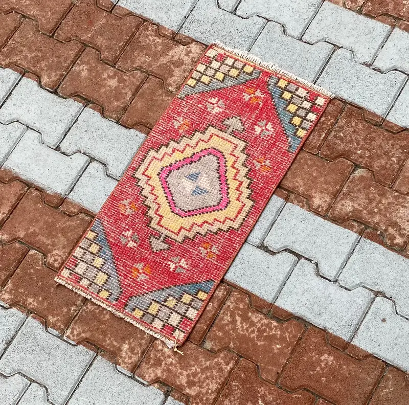 Kırmızı ve Sarı Halı, 1.2x2.5 ft Çiçek ve Geometrik