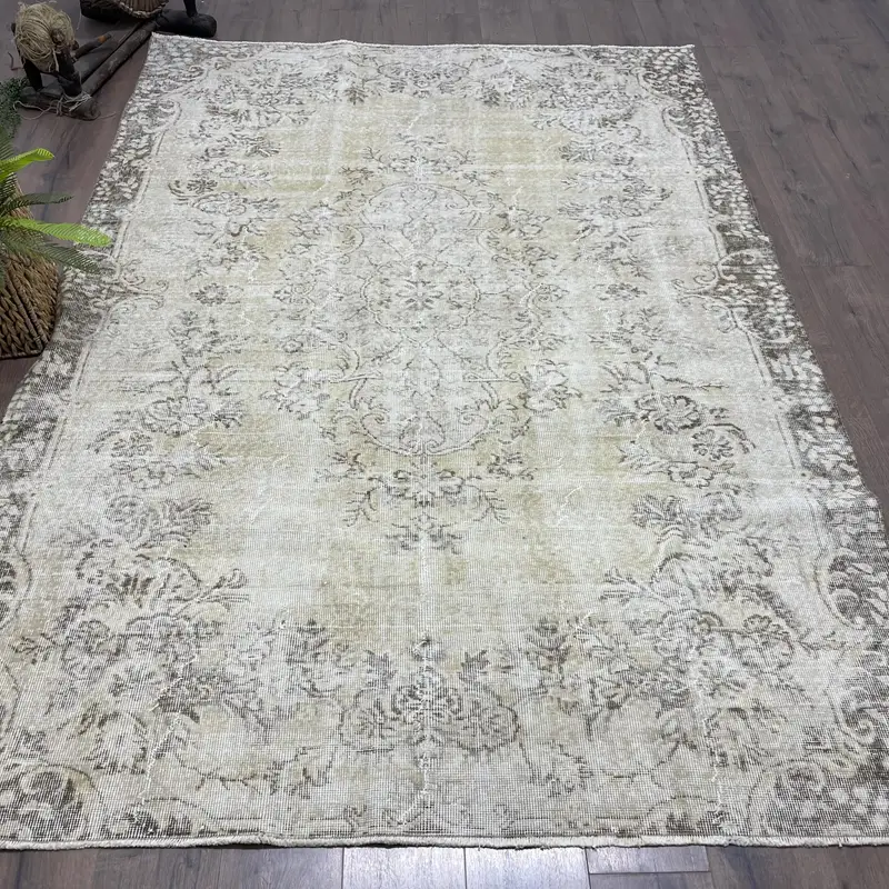 Zarif Bej ve Kahverengi Halı, 6,1x8,6 ft Puantiyeli Tasarım