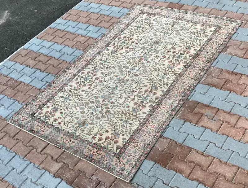 Zarif Bej ve Mor Halı, 5,1x8,9 ft Çiçek ve Geometrik
