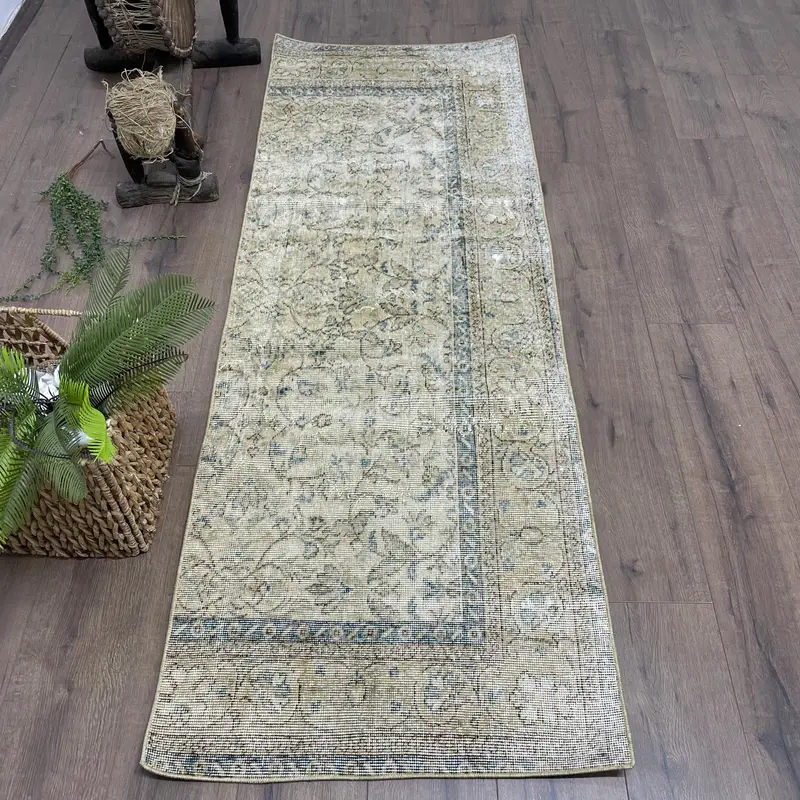 Bej ve Mavi Kareli Halı, 2,4x6,7 ft Zarif Döşeme