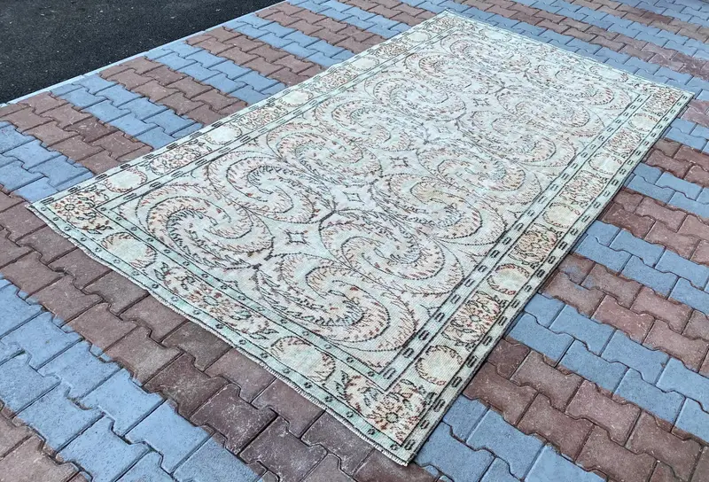 Zarif Bej ve Kahverengi Halı, 6x9 ft Çiçek ve Geometrik