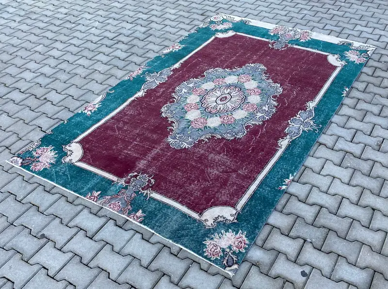 Kırmızı ve Yeşil Halı, 6,1x9,7 ft Çiçek ve Geometrik