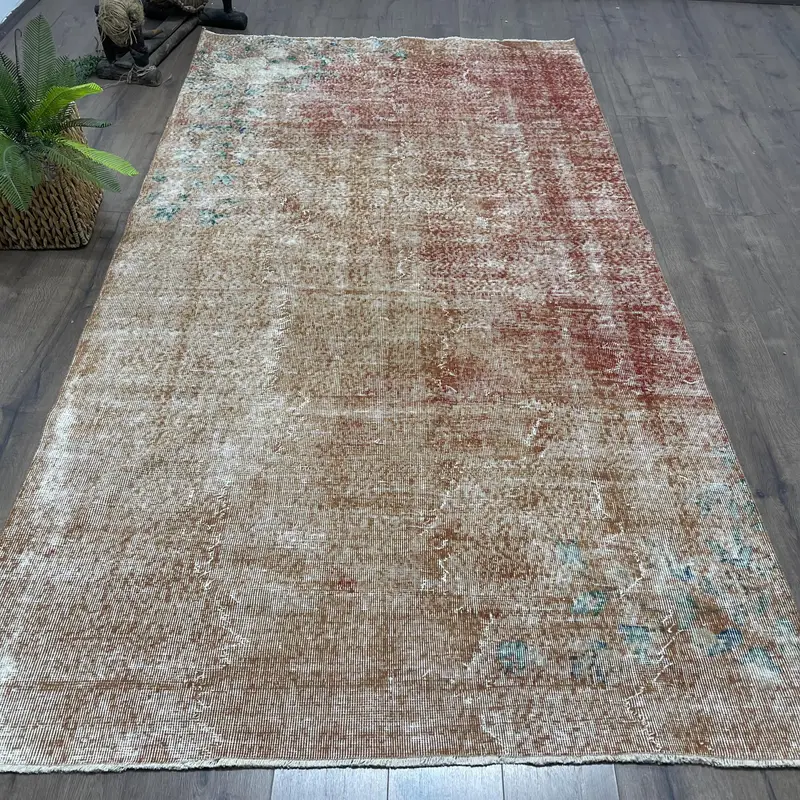 Turuncu, Yeşil Kamuflaj Halı, 5,2x9,8 ft Şık Dekor
