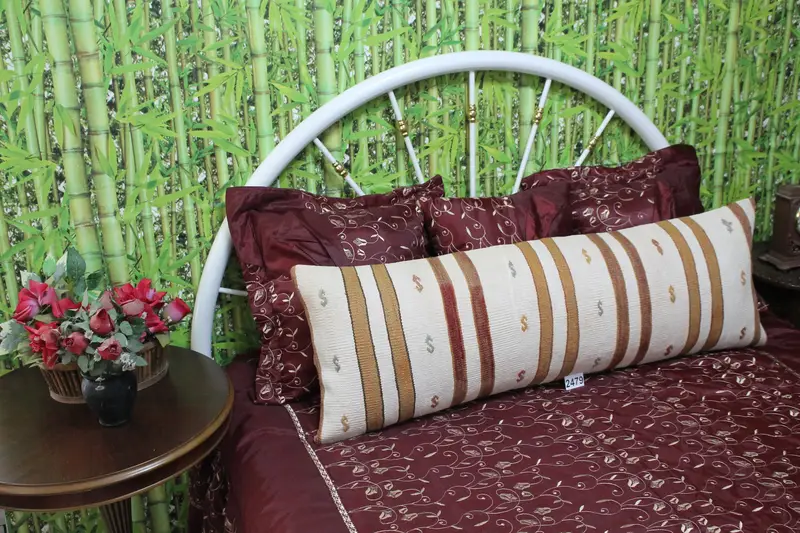 El Yapımı Çizgili Kırlent, 16x48 İnç Dikdörtgen Pamuk Yün Yastık