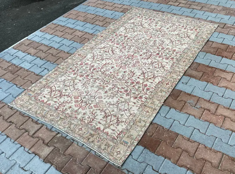 Zarif 5x9 ft Halı, Pembe ve Bej Çiçek-Geometrik Tasarım