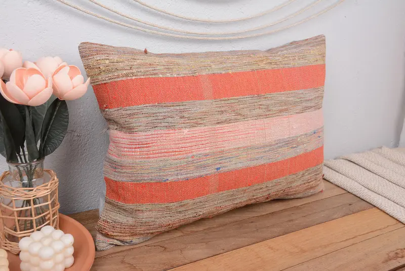 Turuncu & Yeşil Çizgili Yastık, 16x24 Nakışlı Kırlent