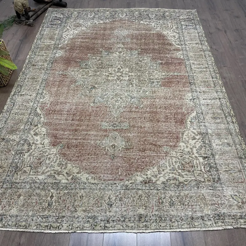 Kırmızı ve Yeşil Halı, 6,3x9,2 ft Botanik Tasarım