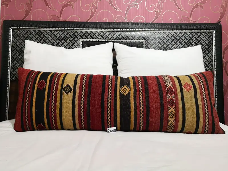 Kırmızı & Siyah Çizgili Yün Kırlent, El Yapımı Dikdörtgen Yastık