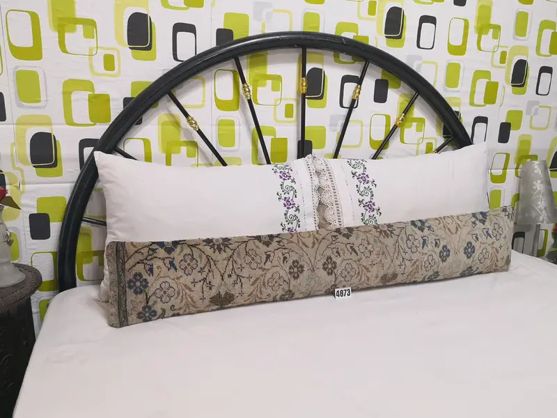 El Yapımı İşlemeli Çiçek Yün Kırlent, Vintage Dikdörtgen Yastık