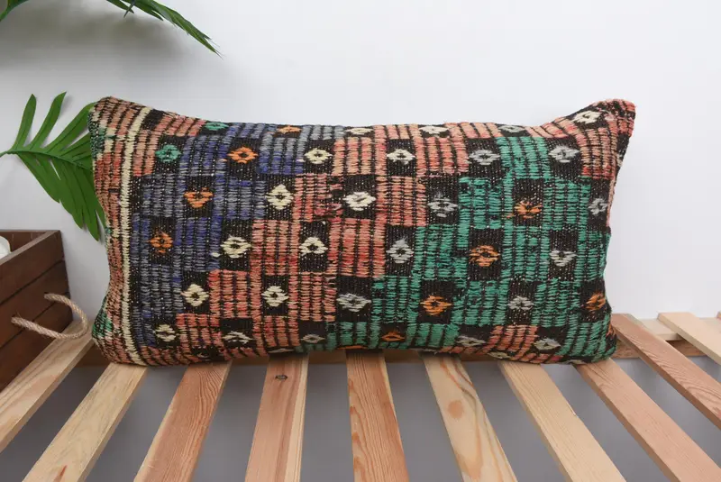 Mavi Güneybatı İşlemeli Kırlent, El Yapımı Vintage Dekor Yastık