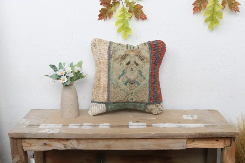 Bej ve Kahverengi Patchwork Kırlent, Vintage İşlemeli Yastık