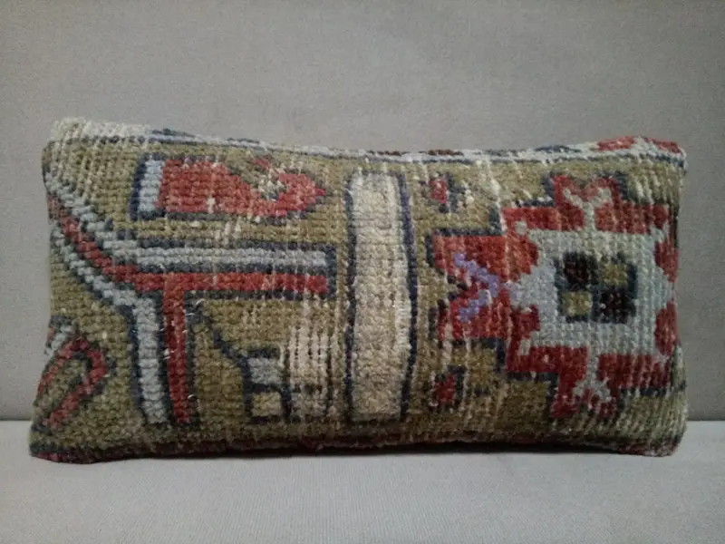 El Yapımı Nakışlı Yün Kırlent, Dikdörtgen Geometrik Vintage Yastık