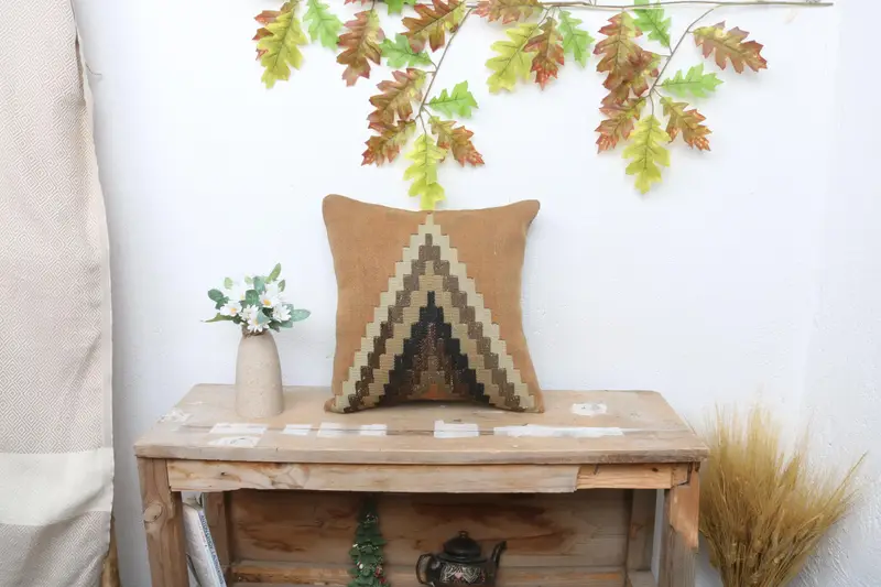 Kahverengi & Bej İşlemeli Kırlent, Çok Yönlü 14x14 Kırlent