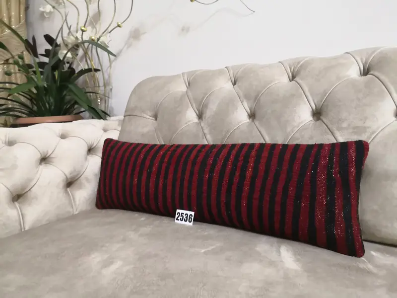 Dikdörtgen Kırmızı & Siyah Çizgili Yün Kırlent, El Yapımı Dekoratif Yastık