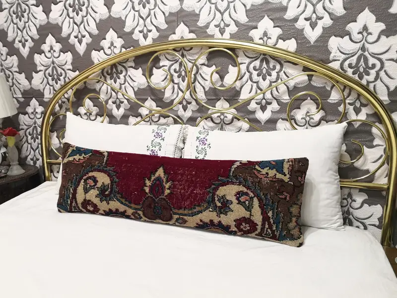 El Yapımı İşlemeli Yün Kırlent, Vintage Geometrik Tasarım Kırlent